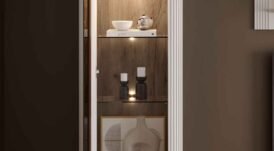 Jednokrilna viseća komoda za dnevnu sobu iz kolekcije RONDO sa parsol staklom.